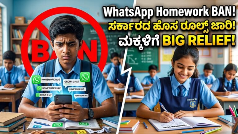 WhatsApp Homework ಮೇಲೆ ಬ್ಯಾನ್ – ವಿದ್ಯಾರ್ಥಿಗಳಿಗೆ ಹೊಸ ಶಿಕ್ಷಣ ನಿಯಮಗಳು ಶಾಲೆಯಿಂದ ಮನೆಗೆ ಬಂದ ಕೂಡಲೇ “ಅಮ್ಮಾ… ಮೊಬೈಲ್ ಕೊಡಿ, ಟೀಚರ್ ಹೋಮ್ವರ್ಕ್ ಕಳಿಸಿದ್ದಾರೆ” ಎನ್ನುವ …
