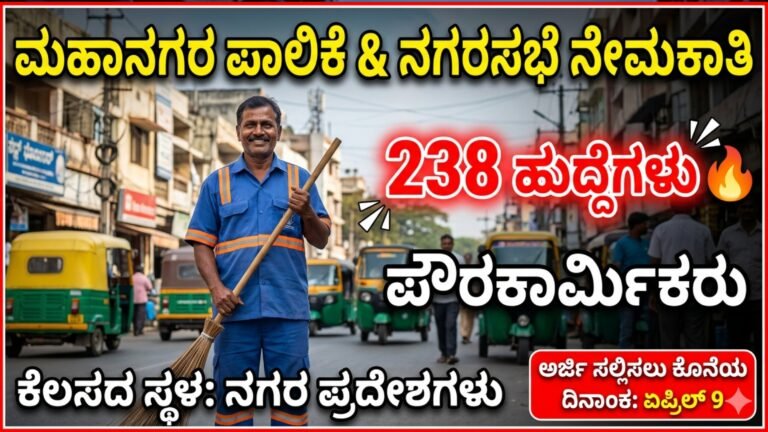 Tumkur Recruitment 2026: ತುಮಕೂರು ಮಹಾನಗರ ಪಾಲಿಕೆಯಲ್ಲಿ 238 ಹುದ್ದೆಗಳು – ದೊಡ್ಡ ಅವಕಾಶ! ತುಮಕೂರು ಜಿಲ್ಲೆಯ ಉದ್ಯೋಗಾಕಾಂಕ್ಷಿಗಳಿಗೆ ಈಗ ದೊಡ್ಡ ಸುವರ್ಣಾವಕಾಶ ಬಂದಿದೆ. ಸರ್ಕಾರದ ವ್ಯಾಪ್ತಿಯಲ್ಲಿರುವ …