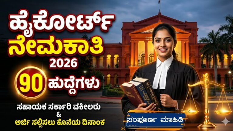 High Court Jobs 2026: ಹೈಕೋರ್ಟ್ನಲ್ಲಿ ಕೆಲಸ ಮಾಡುವ ಅವಕಾಶ – 90 ಹುದ್ದೆಗಳು ಖಾಲಿ High Court Jobs 2026 : ಕರ್ನಾಟಕ ಹೈಕೋರ್ಟ್ನಲ್ಲಿ 90 …