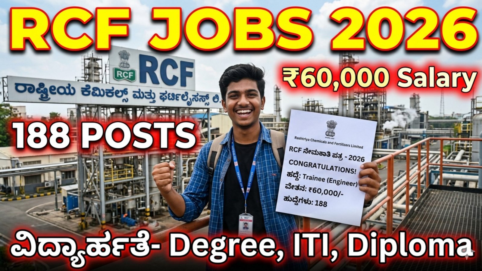 RCF Recruitment 2026 : ₹60,000 ಸಂಬಳದ ಸರ್ಕಾರಿ ಉದ್ಯೋಗ – 188 ಹುದ್ದೆಗಳು, ಇವತ್ತೇ ಅಪ್ಲೈ ಮಾಡಿ!