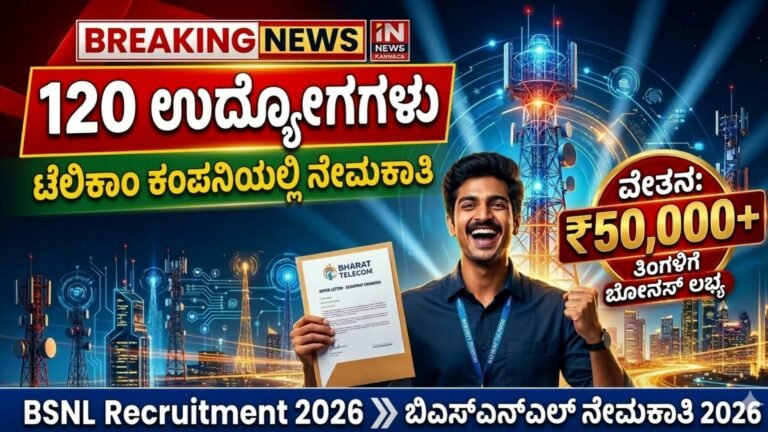 BSNL Recruitment 2026: 120 Executive ಹುದ್ದೆಗಳ ನೇಮಕಾತಿ – ತಿಂಗಳಿಗೆ ₹50,000ಕ್ಕೂ ಅಧಿಕ ವೇತನ! ಭಾರತದಲ್ಲಿ ಸರ್ಕಾರಿ ಉದ್ಯೋಗಕ್ಕಾಗಿ ಕಾಯುತ್ತಿರುವ ಯುವಕರಿಗೆ ಇದೀಗ ದೊಡ್ಡ ಅವಕಾಶ …