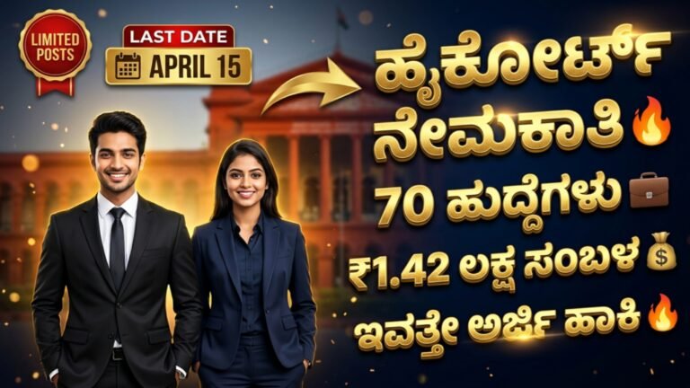 ಕರ್ನಾಟಕ ಹೈಕೋರ್ಟ್ನಲ್ಲಿ ಭರ್ಜರಿ ನೇಮಕಾತಿ 2026: 70 Assistant Court Secretary ಹುದ್ದೆಗಳು – ₹1.42 ಲಕ್ಷ ಸಂಬಳ, ತಕ್ಷಣ ಅರ್ಜಿ ಹಾಕಿ!